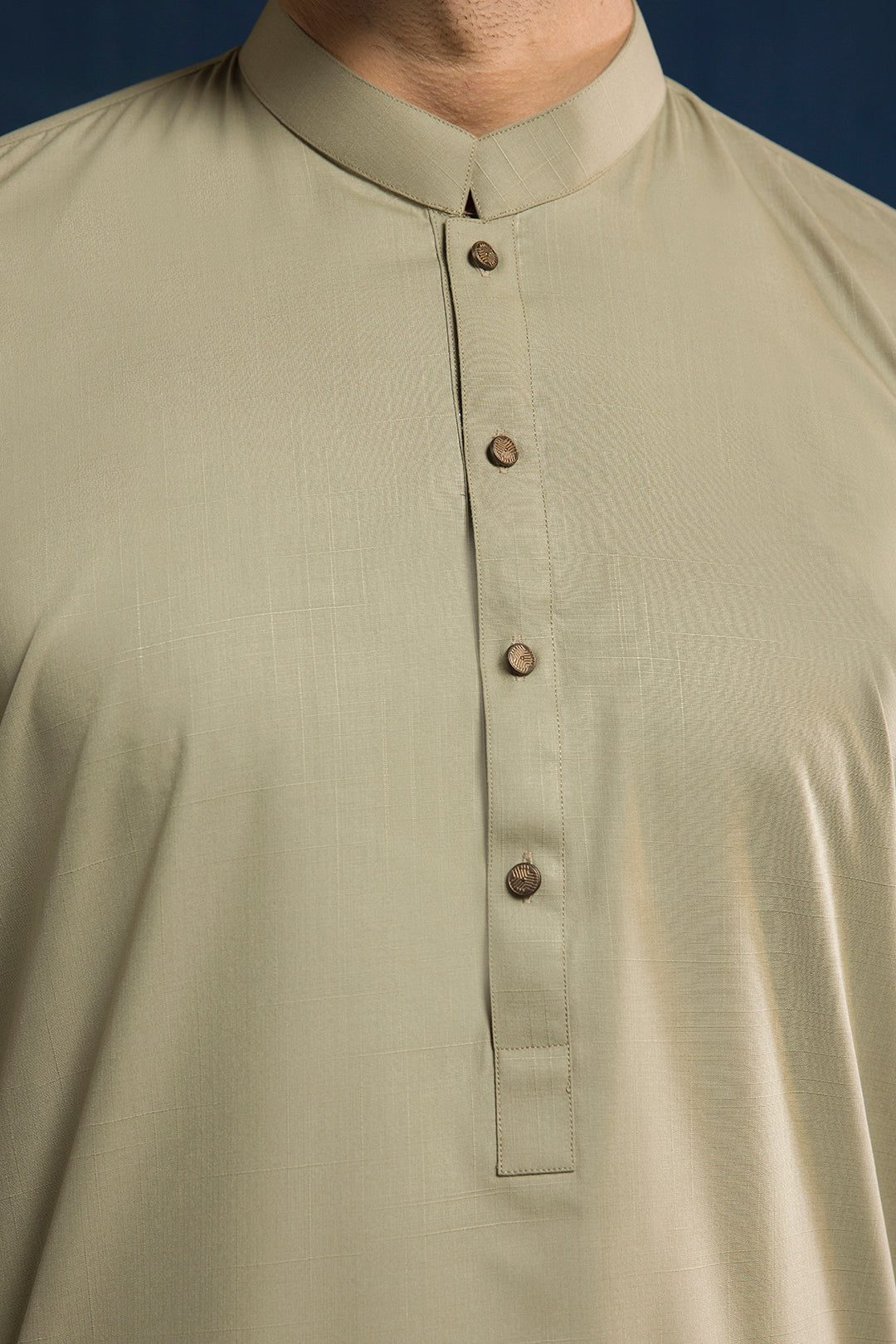 This Slub Textured Shalwar Kameez in Mehndi Green offers a refined blend of comfort and traditional style. Crafted from a blended fabric, it provides enhanced durability and breathability, perfect for everyday wear or special occasions. Its subtle texture adds depth to the fabric, elevating the classic Eastern silhouette. Designed specifically for men, this ensemble combines cultural heritage with modern practicality. Ideal for those seeking a sophisticated yet comfortable outfit that reflects timeless elegance.