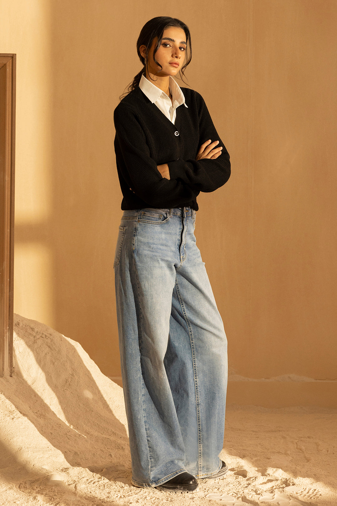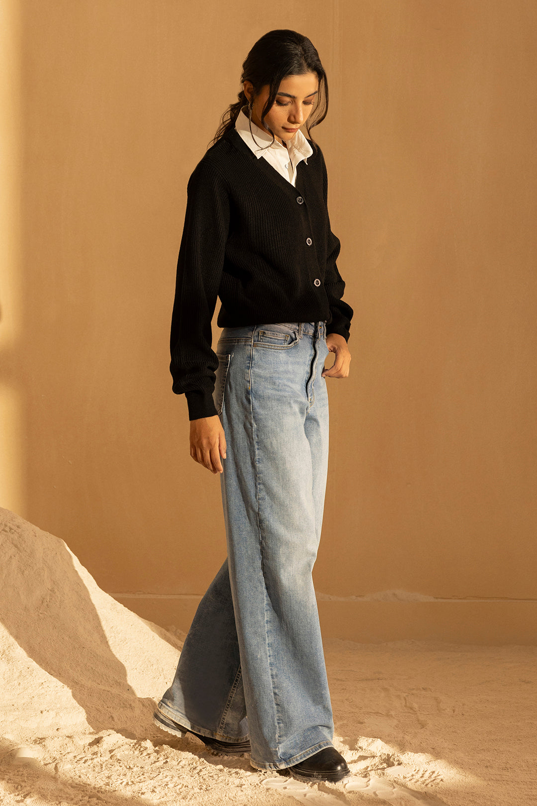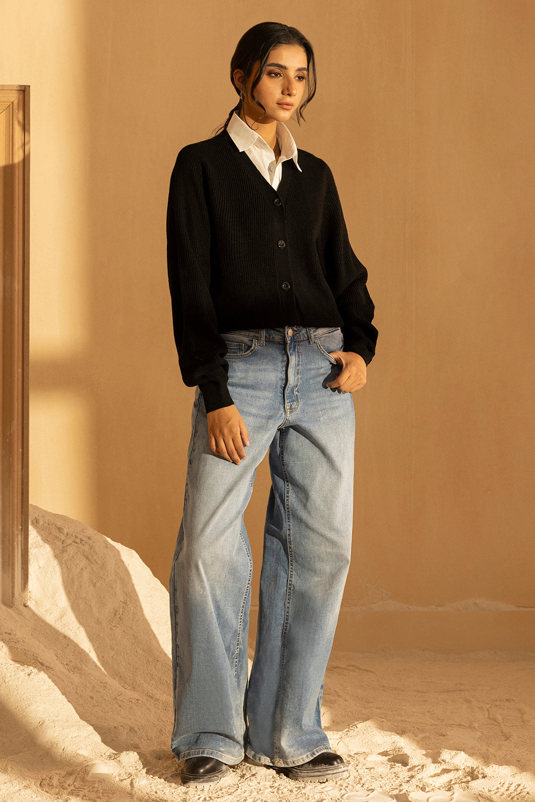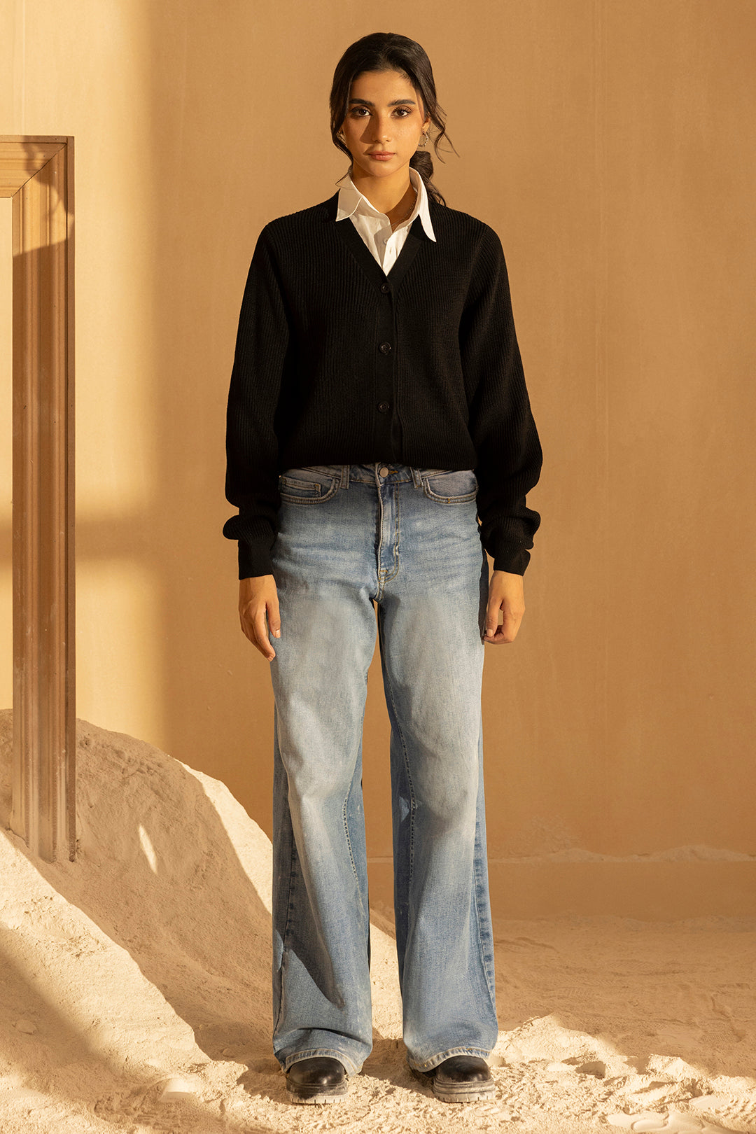 Crafted from premium acrylic, this black sweater delivers exceptional warmth and durability for the winter season. The fabric's natural softness ensures comfort throughout the day, while its resilience maintains shape and color after repeated wear. Designed with a refined silhouette, this piece seamlessly transitions from casual outings to layered styling. The acrylic composition provides easy care and maintenance, making it a practical addition to any winter wardrobe. Perfect for creating versatile looks that balance sophistication with everyday wearability.
