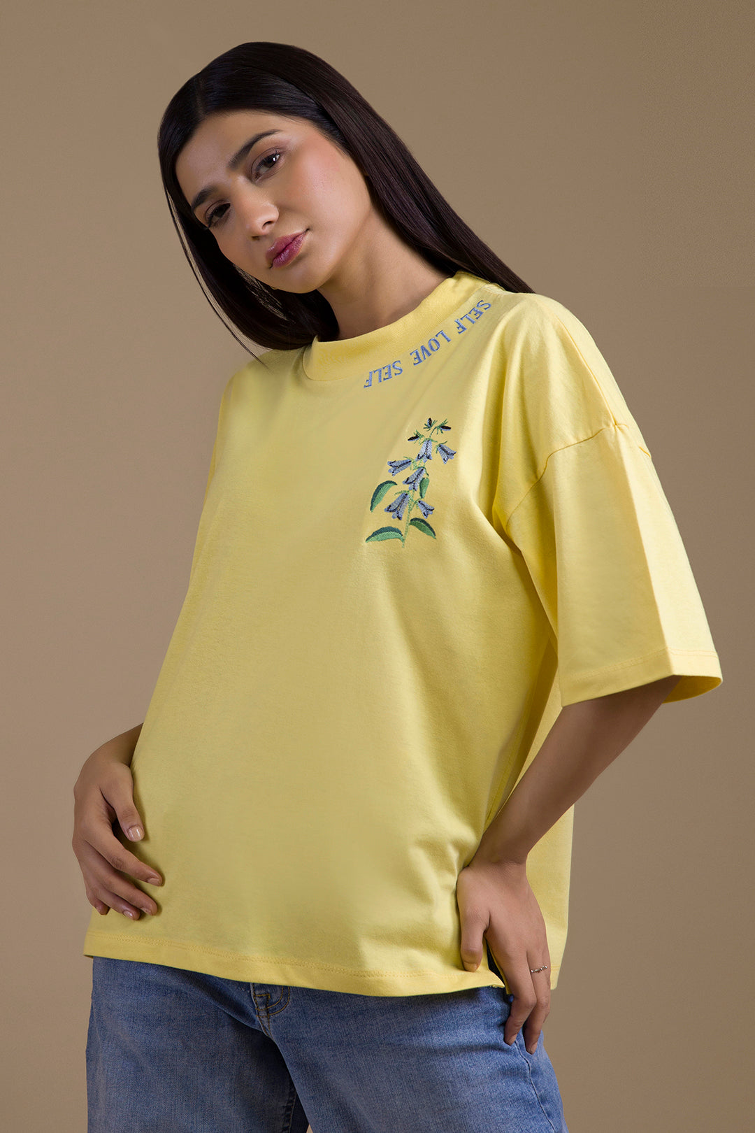 Buy Oversized Graphic Women T-Shirt in Yellow Color