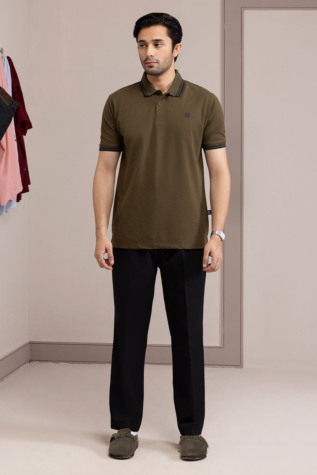 Men Tipping Polo Signature Polo In Olive Color
