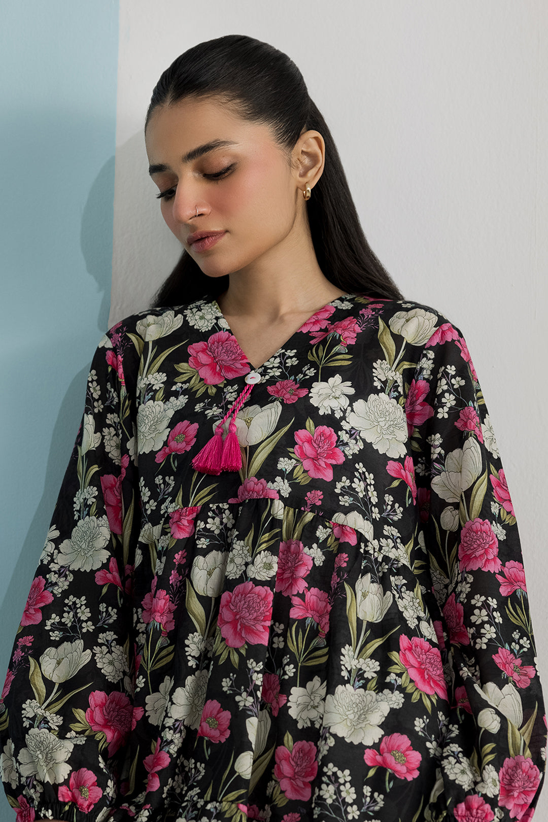 Elevate your everyday wardrobe with this sophisticated black tunics, expertly crafted from textured lawn fabric that offers both comfort and refined elegance. The intricate printed design adds visual depth while maintaining a timeless aesthetic perfect for contemporary styling. This ready-to-wear piece combines quality craftsmanship with versatile appeal, making it an essential addition to any woman's collection. The breathable lawn fabric ensures all-day wearability, while the classic silhouette flatters various body types with effortless grace.
