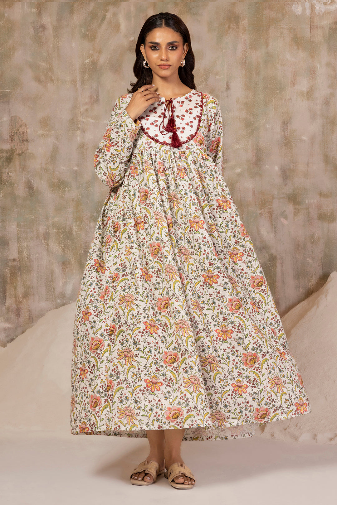 This off-white tunics crafted from khaddar fabric offers a comfortable and breathable fit, ideal for everyday wear. Its printed design adds subtle elegance to the pret collection, making it a versatile choice for women seeking both style and ease. Perfect for casual or semi-formal occasions, this kurta blends traditional fabric with modern aesthetics.