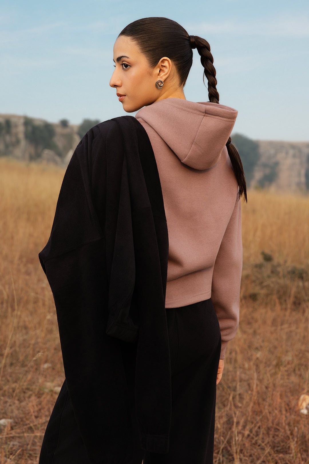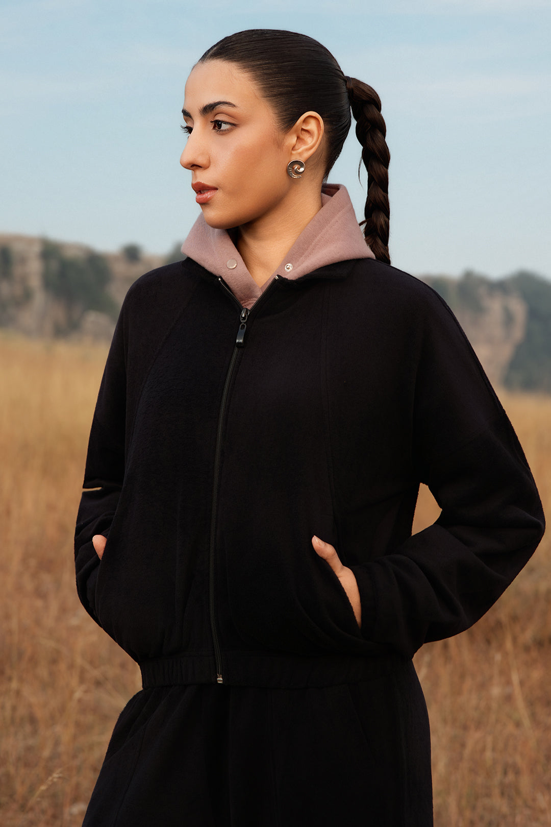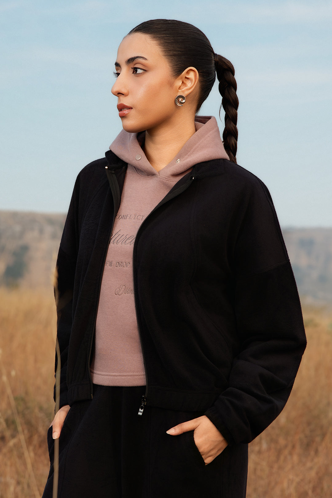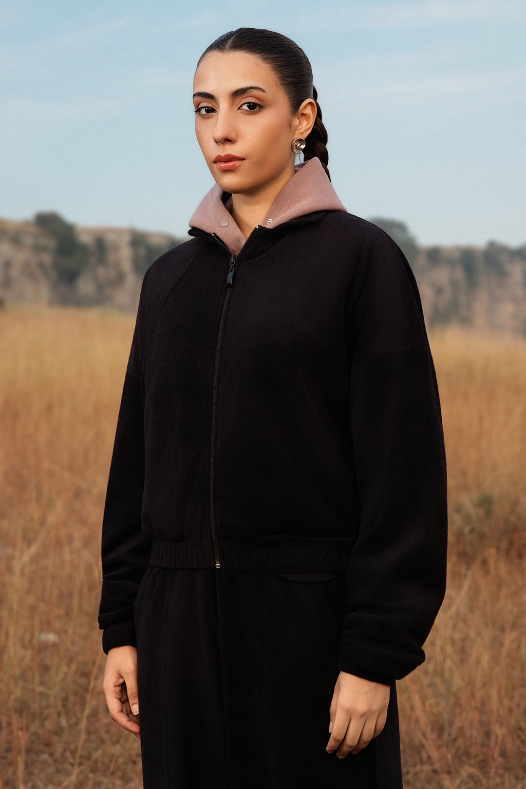 High-waisted Black tailored-fit trousers in buttery velour fabric, finished with side pockets and a front pleat for a polished yet easy-to-style look.