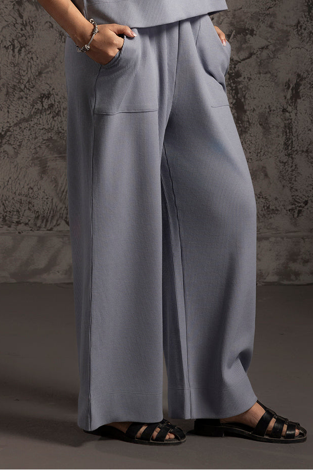 Elevate your everyday wardrobe with this sophisticated waffle knit trouser in a refined dusky blue shade. Crafted from textured fabric, this piece delivers both comfort and style with its distinctive knit construction that adds visual depth and dimension. The structured silhouette flatters the figure while the breathable material ensures all-day wearability. Perfect for transitioning from office to casual settings, this versatile trouser pairs effortlessly with blazers, sweaters, or simple tees. A timeless essential that combines contemporary design with practical elegance.